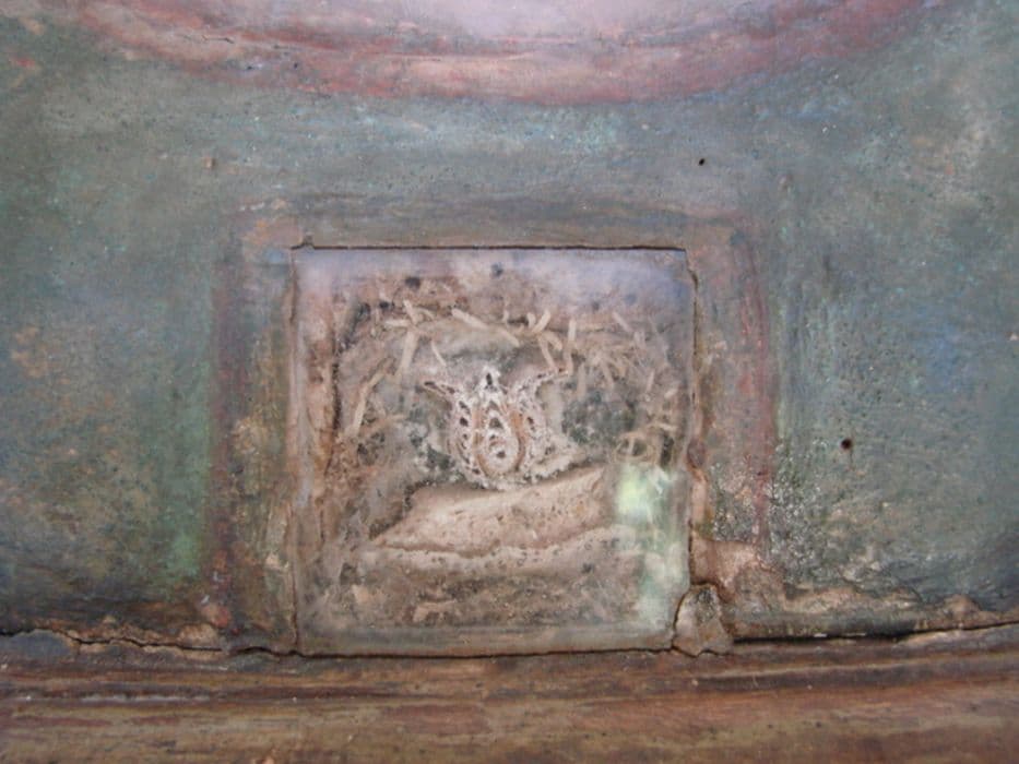 Une cavité protégée par une vitre contient la relique, un fragment d’os et une attestation de 1796.