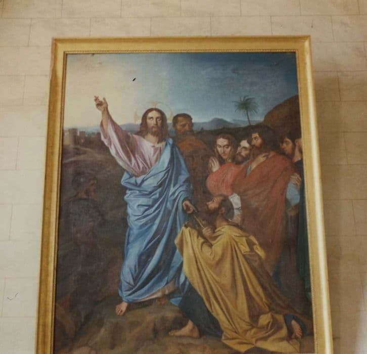 tableau et son cadre : Jésus remettant les clés à Saint Pierre