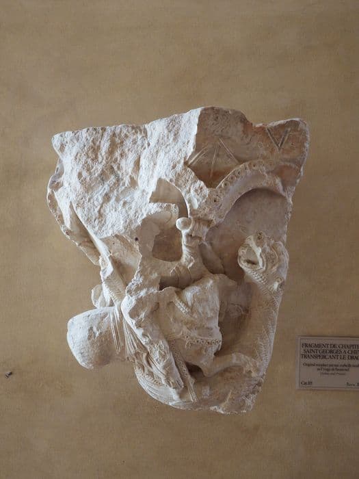 fragment de chapiteau historié : Saint Georges terrassant le dragon