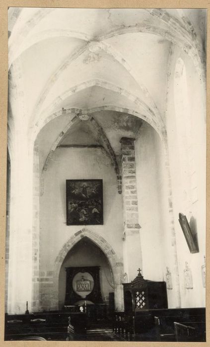 Dans la nef gauche de l'église, contre le mur du clocher.