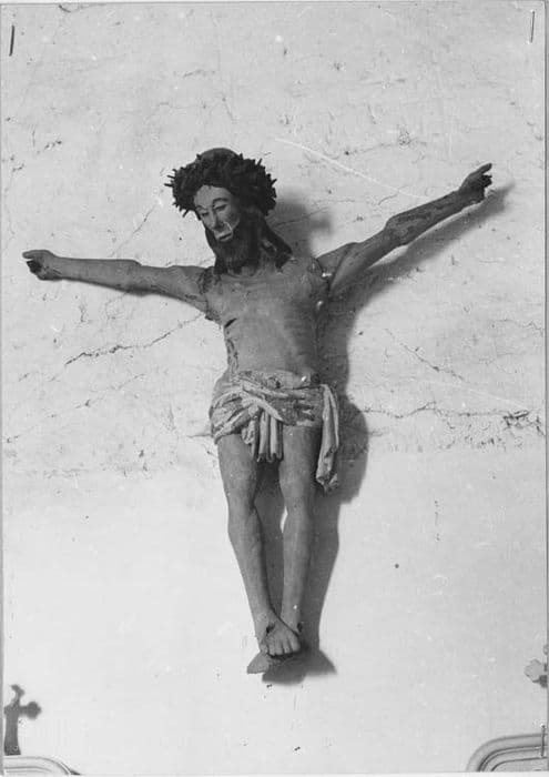 Il ne reste que la figure du Christ, la croix a disparu.