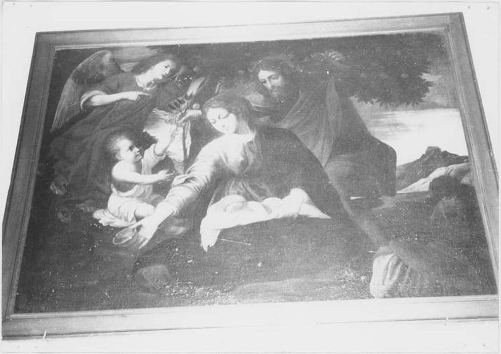 Le Repos de la Sainte Famille : La Vierge et l'Enfant sont entourés de saint Joseph et d'un ange.