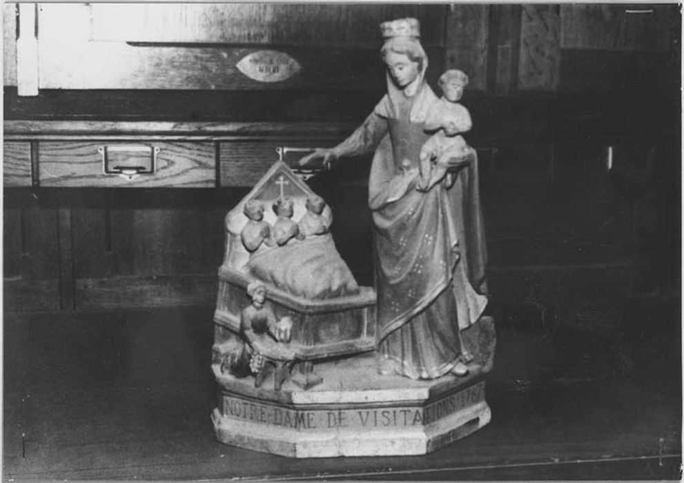 Inscription et date peintes sur le socle : NOTRE-DAME DE VISITATIONS 1787.