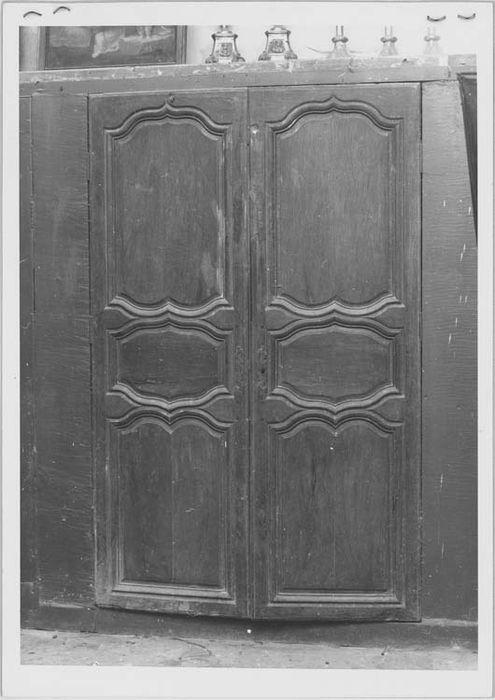 Oeuvre démontée ; partie en remploi : les portes ont été remployées dans les boiseries de la sacristie.