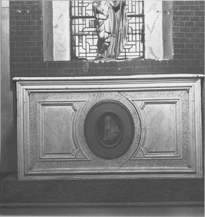 autel de la chapelle de la Vierge, bois peint avec médaillon, huile sur toile