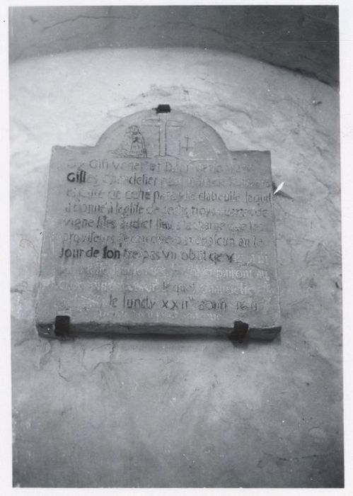 L'inscription rappelle la mémoire de Gilles Chandelier, curé de la paroisse, qui fit un don à l'église le 23 août 1611.