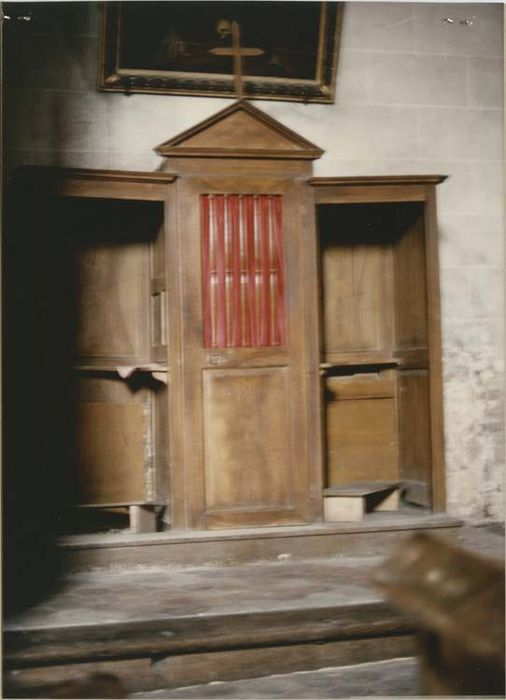 Dans le bras gauche du transept de l'église, adossé au mur nord.