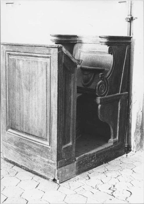 h = 117 ; la = 72,5 ; pr = 46 (siège) ; h = 110 ; la = 78,5 (prie-dieu) ; pr = 99 (ensemble de la base)