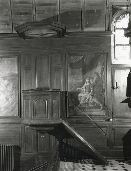 POP | Plateforme ouverte du patrimoineboiseries dans lesquelles sont insérées : chaire à prêcher, banc d'oeuvre et deux troncs