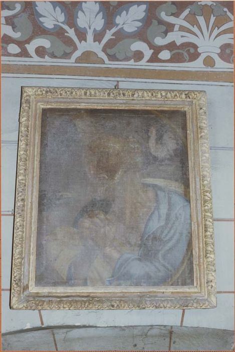 Dans la sacristie de l'église, mur ouest, au-dessus de la porte.