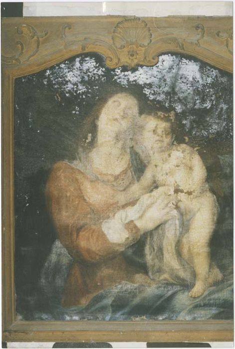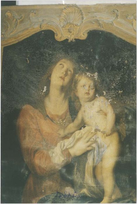 Copie de Van Dyck, d'après le conservateur du musée de Lille (1990) : la Vierge est représentée avec un certain maniérisme, les yeux exorbités. Le cadre date du XVIIIe siècle.