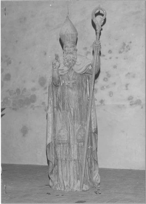 saint Denis ; évêque ; en pied ; bénédiction ; portant ; crosse ; mitre
