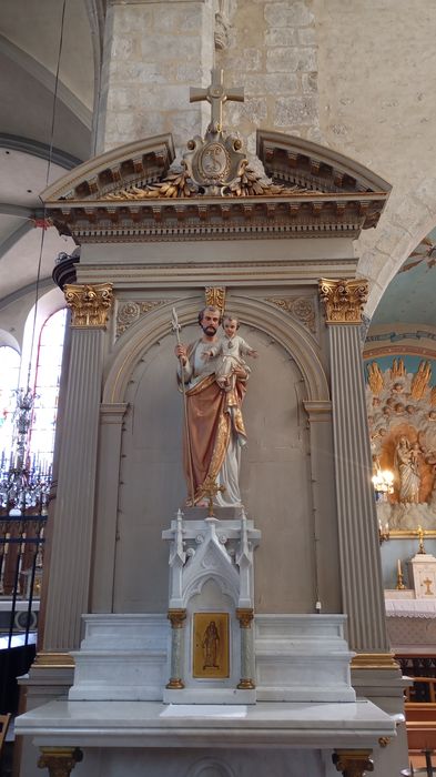 Entre la nef et le bas côté de l'église, 3e travée contre le pilier.