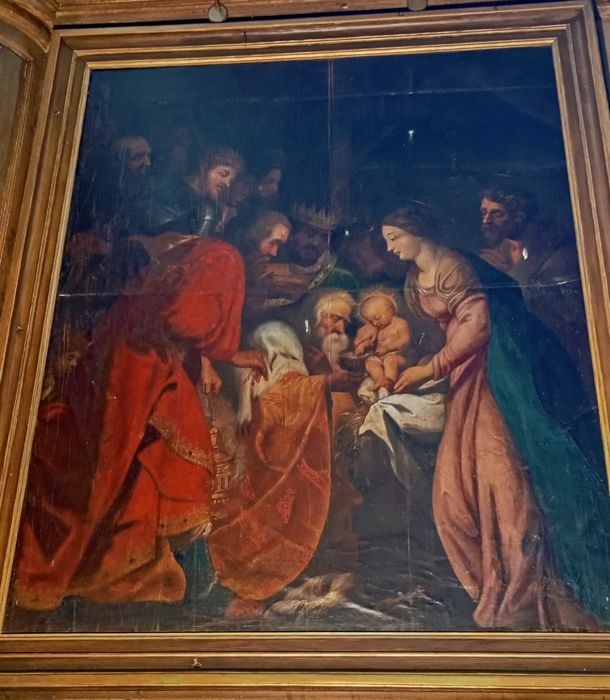 Influence flamande (Van Moll, B. de Kaiser) et de Rubens. Fortes analogies avec plusieurs Nativités de Rubens.