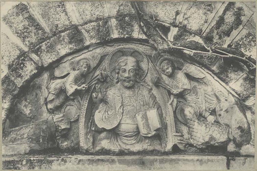POP | Plateforme ouverte du patrimoinebas-relief : Christ bénissant (le), symboles des quatre évangélistes