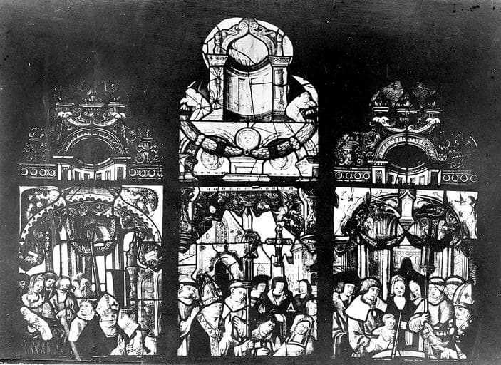POP | Plateforme ouverte du patrimoine4 verrières : Légende de saint René ou de saint Maurille (la), pentecôte (la), assomption (l'), Dieu le père entouré d'anges