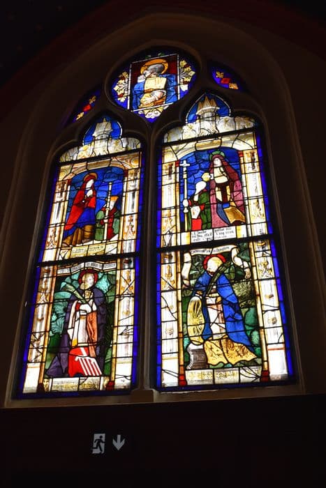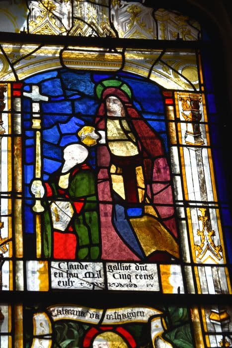 2 verrières : Arbre de Jessé, saintes femmes, deux donateurs et leurs patrons, saint Laurent et sainte Catherine, buste d'apôtre