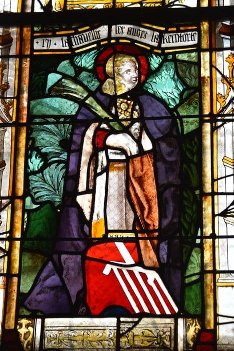 POP | Plateforme ouverte du patrimoine2 verrières : Arbre de Jessé, saintes femmes, deux donateurs et leurs patrons, saint Laurent et sainte Catherine, buste d'apôtre