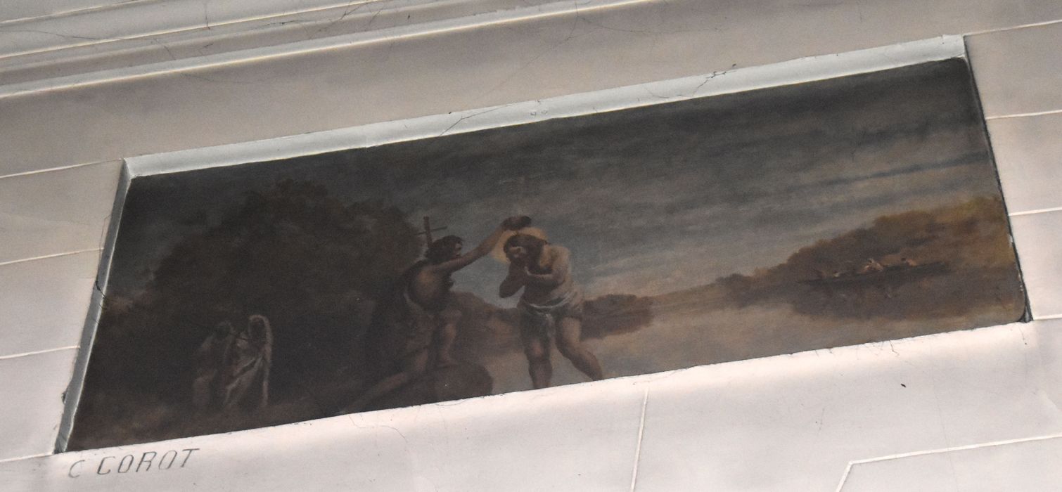 peintures monumentales du transept : Adam et Eve chassés du Paradis terrestre, le Baptême du Christ, Christ au Jardin des oliviers (le), sainte Marie-Madeleine au désert