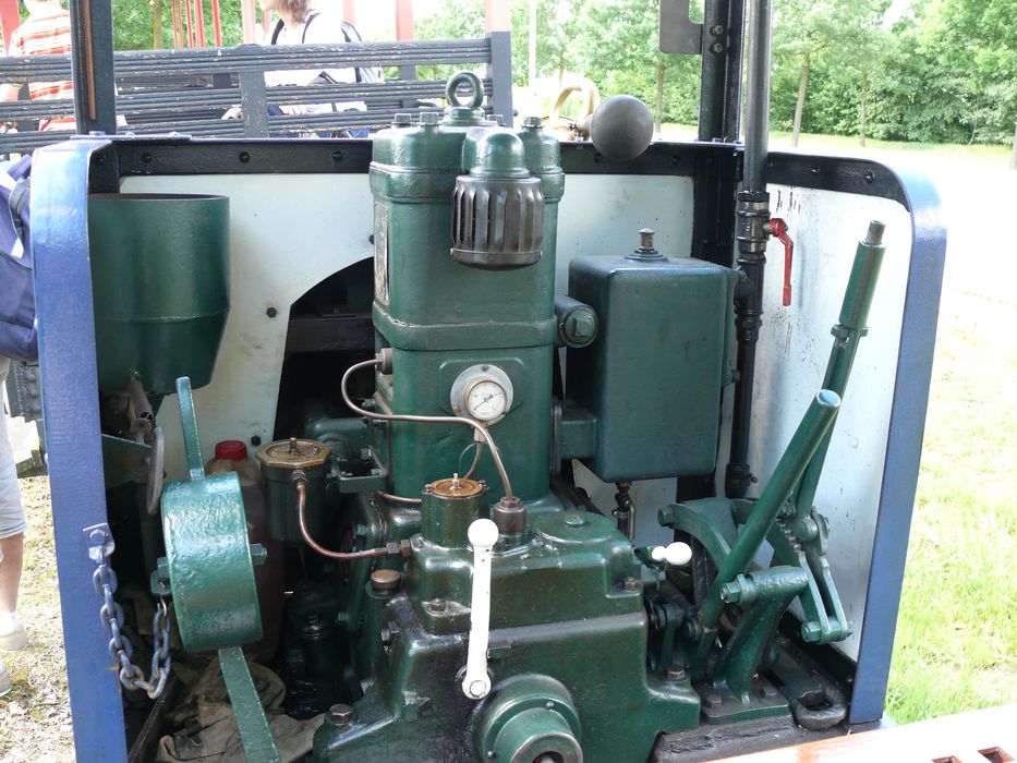 Le tracteur à 2 essieux a une puissance de 10 CV pour une masse d'environ 2 tonnes.£ Le moteur d'origine est un Diesel monocylindre à 2 temps CLM, type CR1. Ces moteurs étaient fabriqués par la Compagnie Lilloise de Moteurs, filiale de Peugeot crée en 1928 pour exploiter un brevet 'Junkers' dans ses usines de Fives-Lille et Saint-Etienne. Ces moteurs inventés par Hugo Junkers dans son atelier de Dessau en Allemagne ont précédé la fabrication des avions et ont été essayés sur certains d'entre eux. La CLM a fabriqué quelques 13000 moteurs de ce type, de différentes cylindrées, entre 1928 et 1933. Le fonctionnement de ce moteur sans culasse est caractérisé par la présence de deux pistons travaillant en opposition dans un même cylindre vertical, reliés par bielles à un unique vilebrequin. Un troisième piston, solidaire du piston supérieur assure l'alimentation en air et le balayage par des lumières situées vers les deux extrémités de la chemise. Le gasoil est injecté latéralement au milieu de la chemise. Alésage : 65 mm ; course piston supérieur : 90 mm, course piston inférieur : 120 mm ; cylindrée: : 0,7 litres ; régime: ralenti : 250 tr/mn- normal : 1000 tr/mn - maximum : 1200 tr/mn ; consommation de gasoil : 2,10 kg/h ; consommation d'huile: 5 g/h ; refroidissement par eau avec radiateur à ventilation naturelle.£La transmission comporte un embrayage, une boite à 2 rapports (changement à l'arrêt) et des chaînes de Gall vers les deux essieux. Le frein, actionné par un levier à contrepoids, agit sur les 2 essieux par 4 sabots extérieurs. Une sablière, dont le réservoir se trouve en cabine, travaille entre les 2 essieux, sur le rail de gauche. La suspension est constituée de 4 ressorts hélicoïdaux reposants sur les 4 boites d'essieux extérieures à coussinets. Les attelages avant et arrière sont constitués de simples clavettes.£La couleur bleue présente est l'une des teintes possibles fonction des chantiers d'utilisation.
