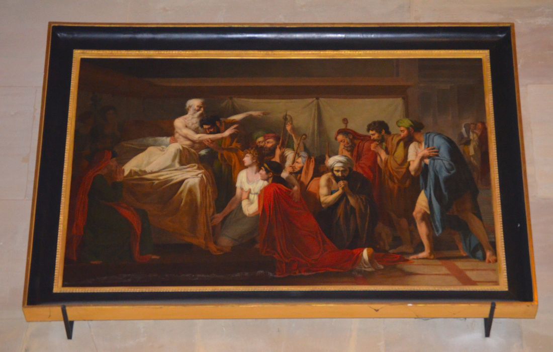 Fiche Conservation des antiquités et objets d'art des Hauts-de-Seine : CAOA92_000135 ; archives de l'église : inventaire de 1906, 184, note du père Baron : Le 15 mai 1858, un tableau représentant Jacob bénissant ses enfants a été donné à l'église par Mr et Mme Thomas, paroissiens de Rueil. Il est l'uvre de feu Mr Charles Dutron-Lafond (chev.de la leg d'h.) grand-père maternel de Mme Thomas. Ce tableau a obtenu la médaille d'or en 1805 sous le règne de Napoléon Ier.