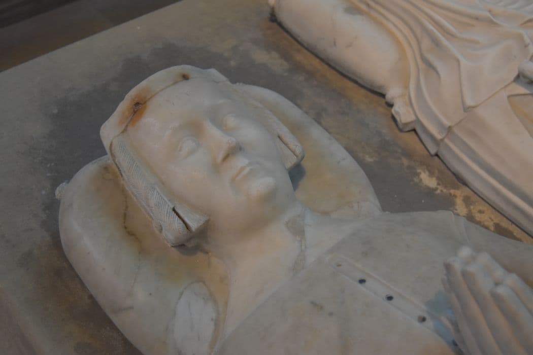 Statue funéraire. Dalle funéraire à effigie en relief.