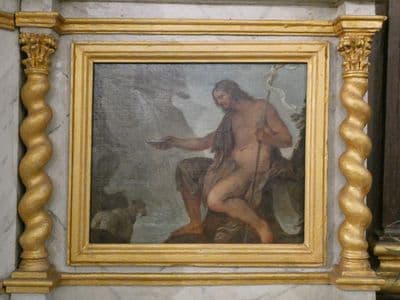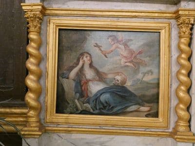 Les deux tableaux sont situés de part et d'autre du tabernacle ; la Madeleine à gauche et saint Jean-Baptiste à droite. L'ensemble est orné de colonnes torses.