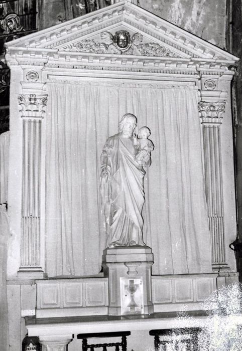 Les deux retables latéraux, très simples, sont contemporains du retable du maître-autel (classé MH PM93000306) avec lequel ils forment un ensemble. (Source : MARTIN-DEMEZIL, 10/11/1972)