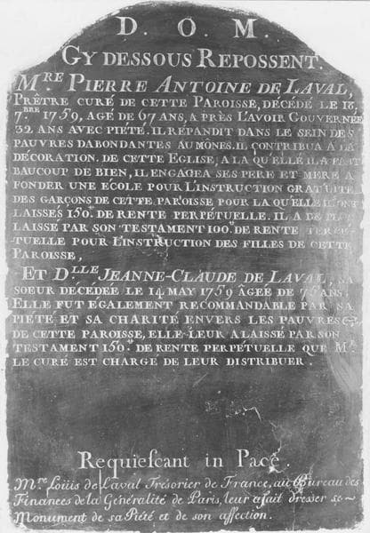 d'Antoine de Laval, curé de Fontenay-sous-Bois, et de Jeanne-Claude de Laval