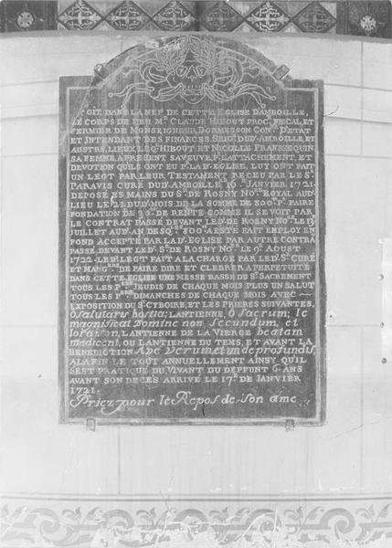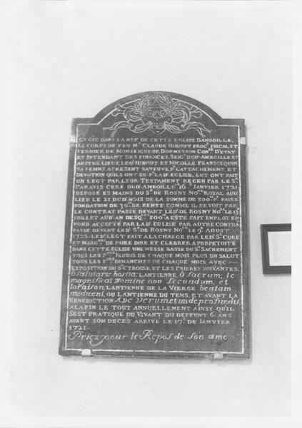 plaque funéraire de Claude Hibout, procureur fiscal et fermier de M. d'Ormesson
