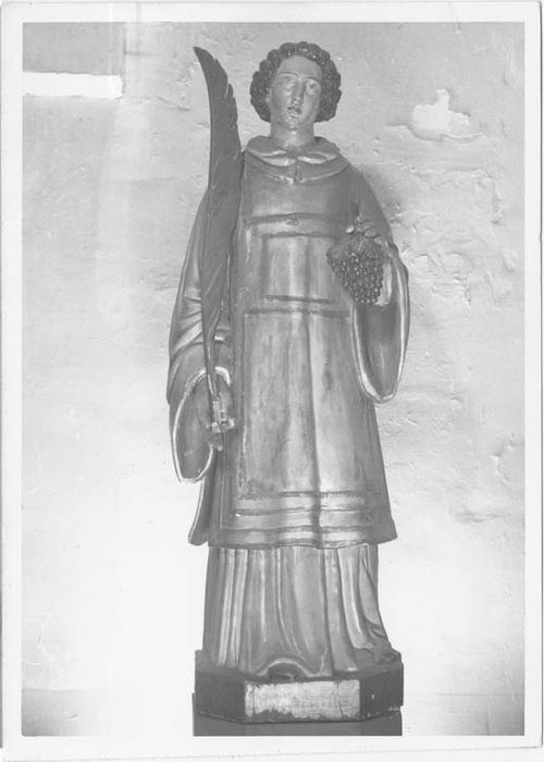 saint Vincent ; en pied ; portant ; palme ; martyre ; raisin