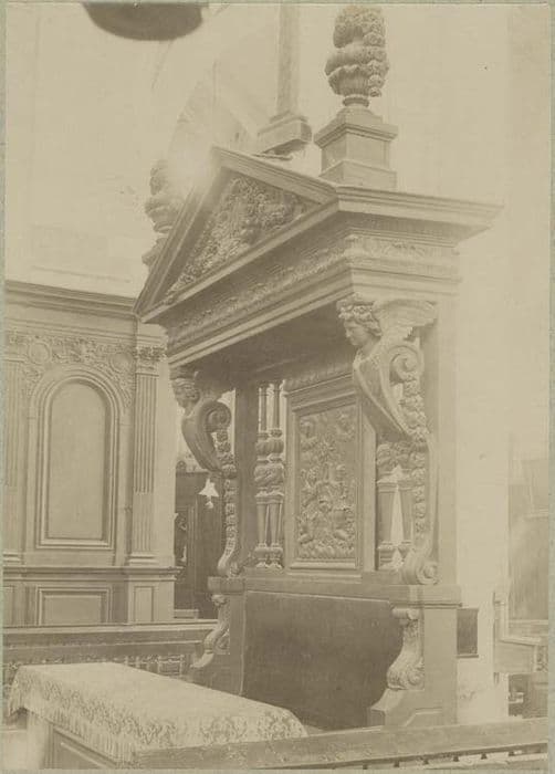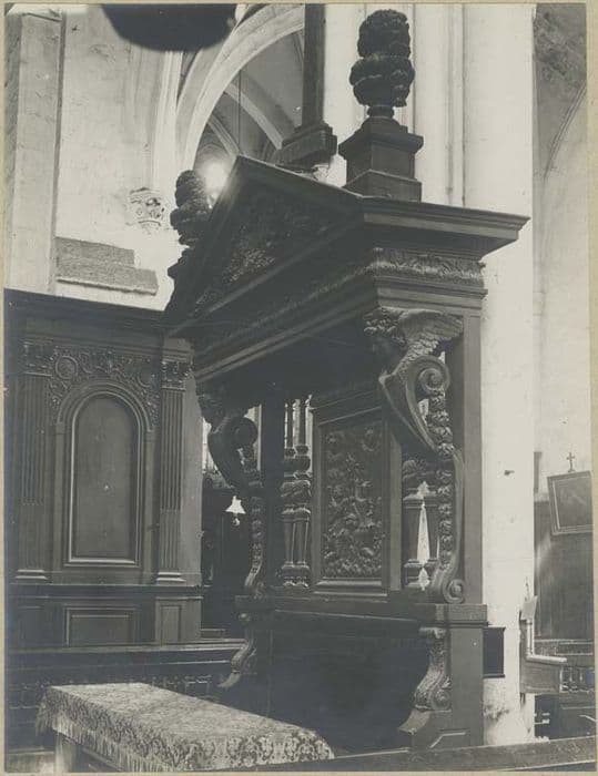 Siège et dossiers sont un remontage du 19e siècle. dossier et baldaquin sculptés.