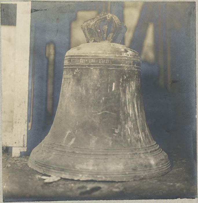 Placée dans le grand clocher depuis 1869, 'descendue depuis peu, pour être envoyée à la fonte à Annecy'.