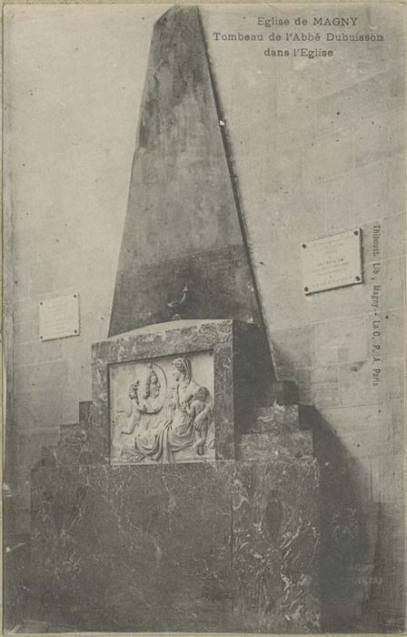 Le monument funéraire du curé Dubuisson (1703-1784) est signé du sculpteur Claude de Joux (1732-1816) et daté de 1788, l'épitaphe a été composée par Condorcet.