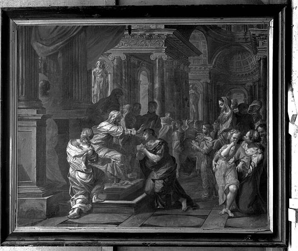 Date : 1723 (Eucharistie). Date : 1724 (les six autres toiles). Armoiries : armoiries du duc de Bouillon (Baptême). Remis en 1800 à l'église Notre-Dame.