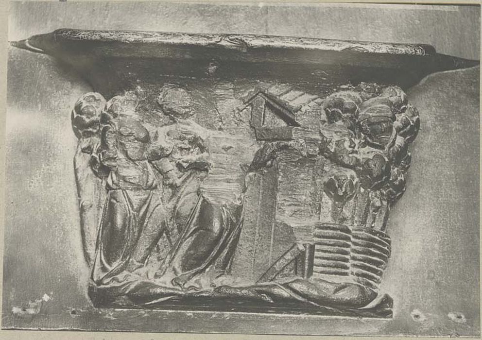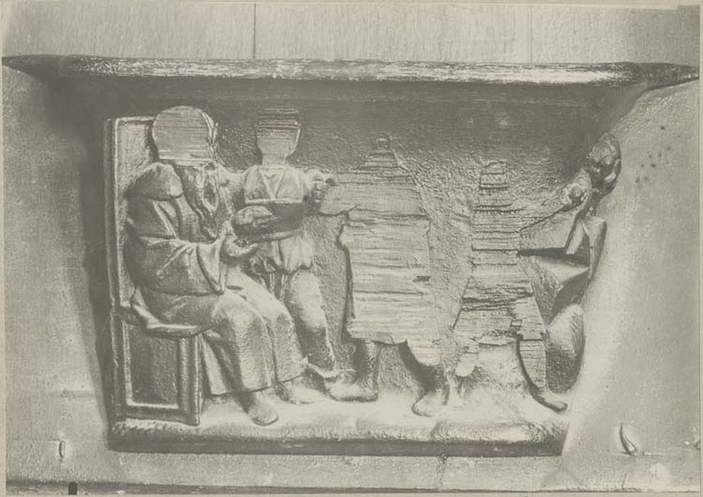 Oeuvre restaurée en 1997. Manques anciens : têtes des personnages sur les jouées ; quelques têtes et parfois des personnages entiers sur les miséricordes.