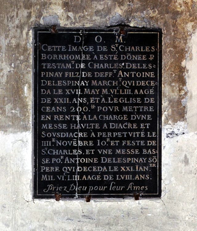 POP | Plateforme ouverte du patrimoinemédaillon en bas-relief de saint Charles Borromée et plaque commémorative de la donation du médaillon