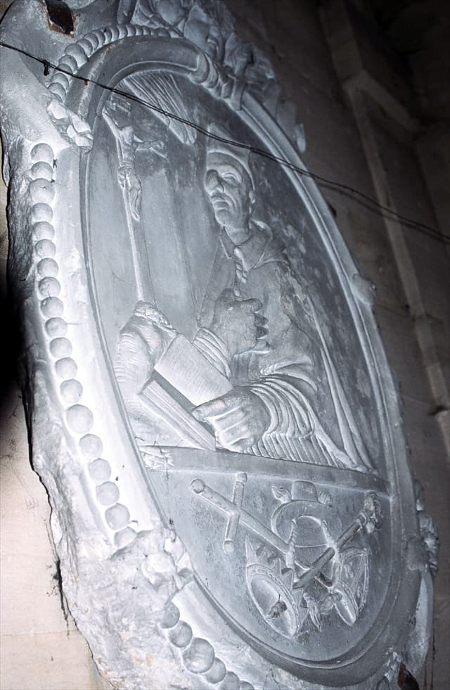 médaillon en bas-relief de saint Charles Borromée et plaque commémorative de la donation du médaillon