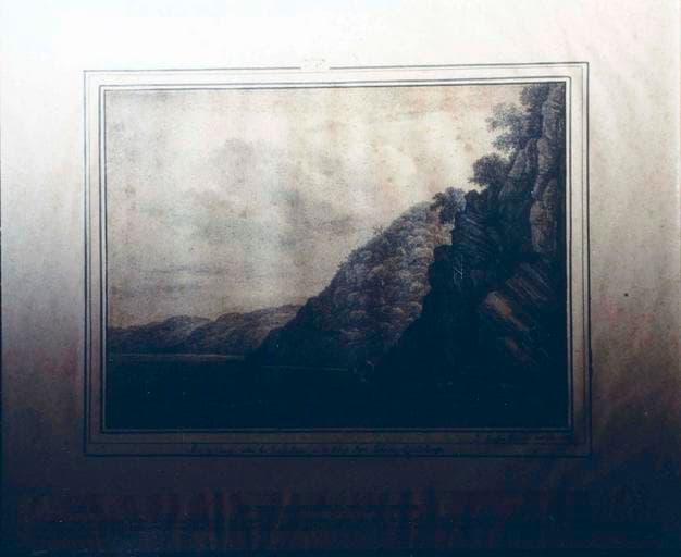 Représentant une vue de rivage et de falaises.