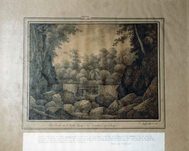 POP | Plateforme ouverte du patrimoinedessin : Pont Ernouf sur la rivière Rouge, au Matouba, Guadeloupe