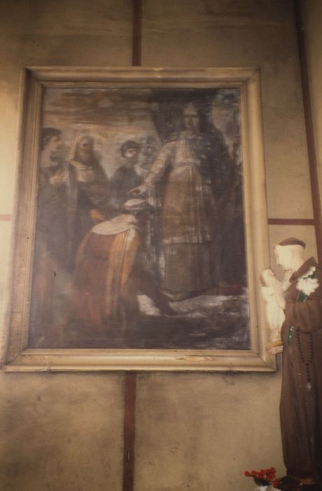 Toile de format rectangulaire vertical (revers non vu). Cadre en bois doré.