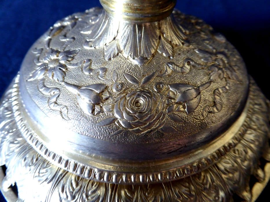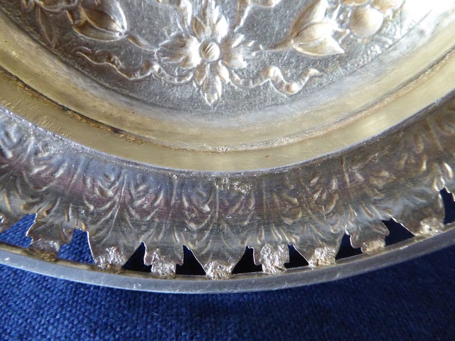 métal (?) : repoussé, ciselé au trait, ciselé au mat, estampé, doré