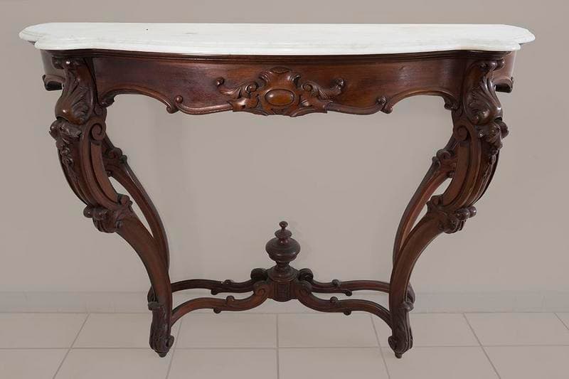 bois feuillu exotique : taillé, mouluré ; marbre (blanc, garniture)
